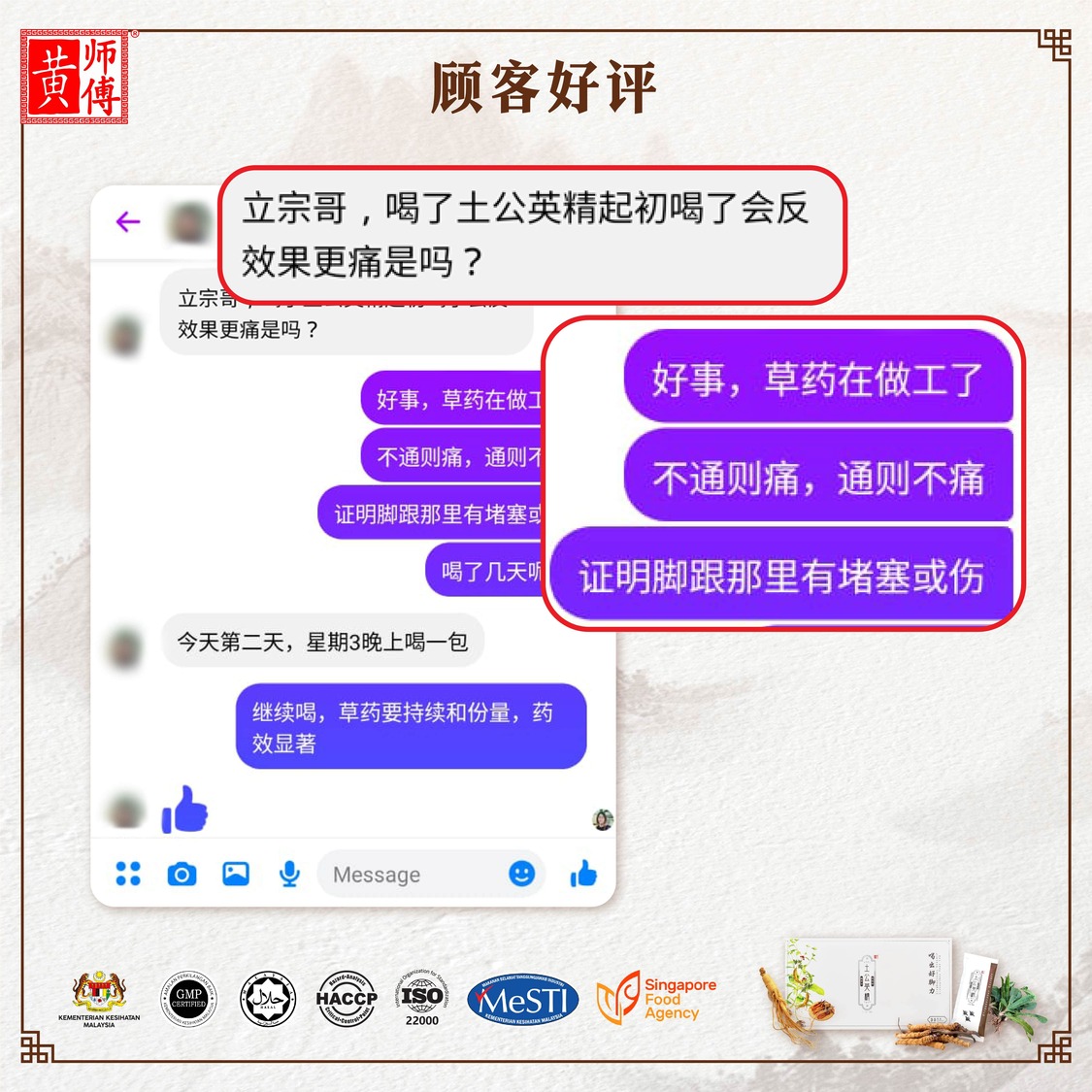 土公英精生草药是根据黄师傅代代相传的秘方调配炮制而成,而帮助加强气血运行,通筋络,提肾气的效果。